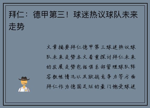 拜仁第18分钟反扳平:战局再度紧张文章摘要: UED体育官方首页ߵ...